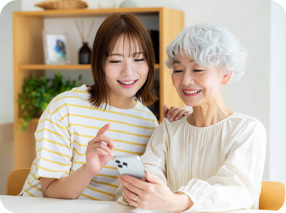 招待した家族だけが参加できる安心の共有機能。コメント機能で離れて暮らす家族とも、気軽に交流を楽しめます。